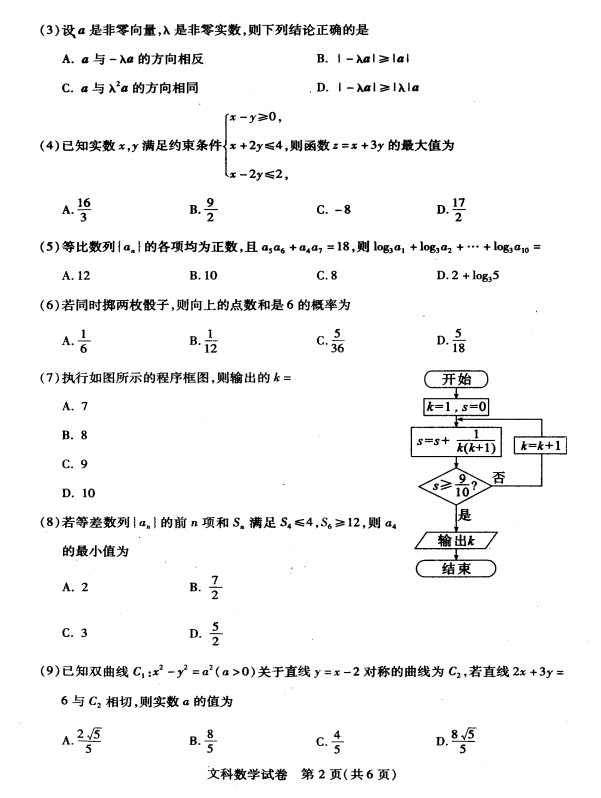 武汉市2017届高中毕业班四月调研测试数学文科试题及答案(2)