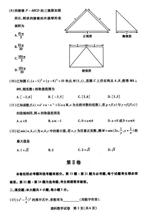 武汉市2017届高中毕业班四月调研测试数学理科试题及答案(3)