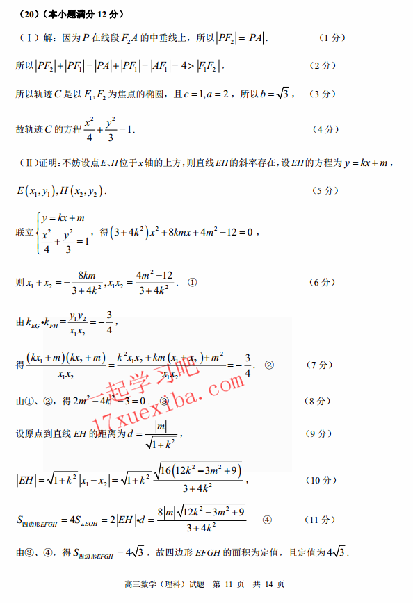 肇庆2017届毕业班第三次教学质量检测数学理科试题及答案(11)