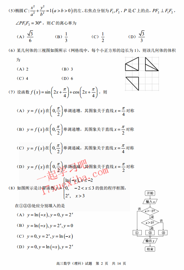 肇庆2017届毕业班第三次教学质量检测数学理科试题及答案(2)