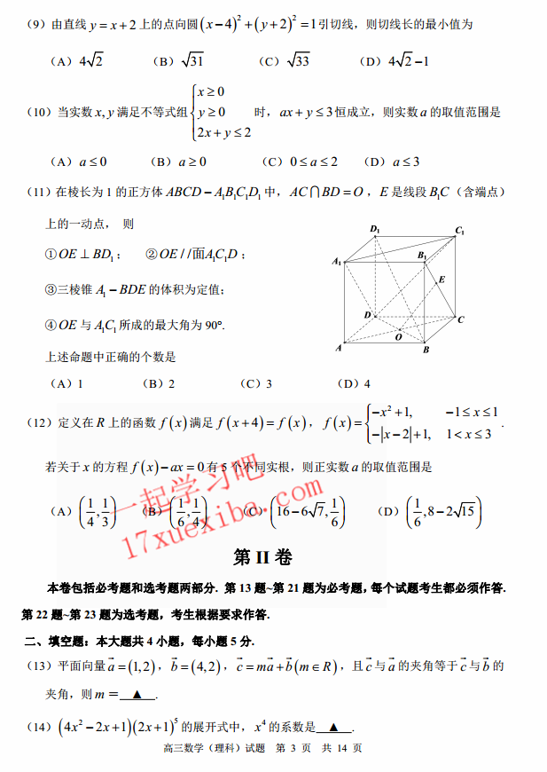 肇庆2017届毕业班第三次教学质量检测数学理科试题及答案(3)