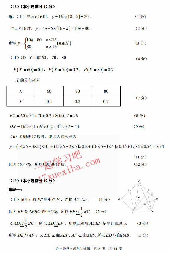 肇庆2017届毕业班第三次教学质量检测数学理科试题及答案(8)