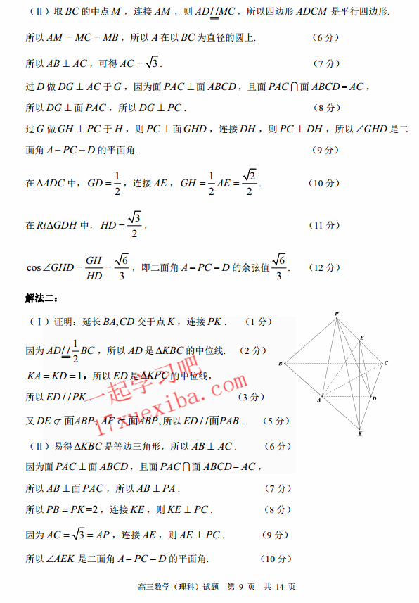 肇庆2017届毕业班第三次教学质量检测数学理科试题及答案(9)