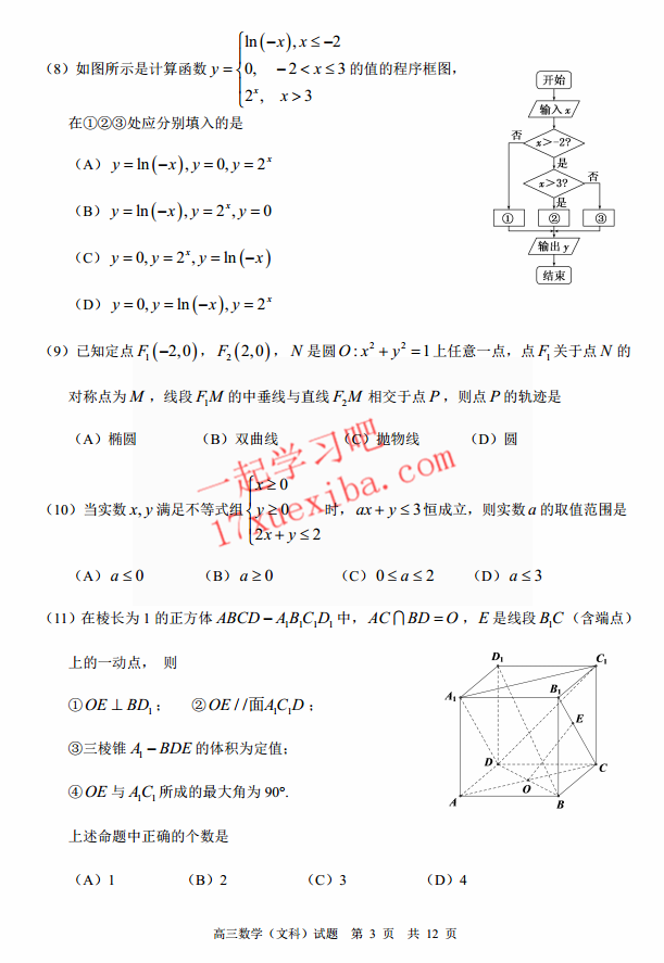 肇庆2017届毕业班第三次教学质量检测数学文科试题及答案(3)