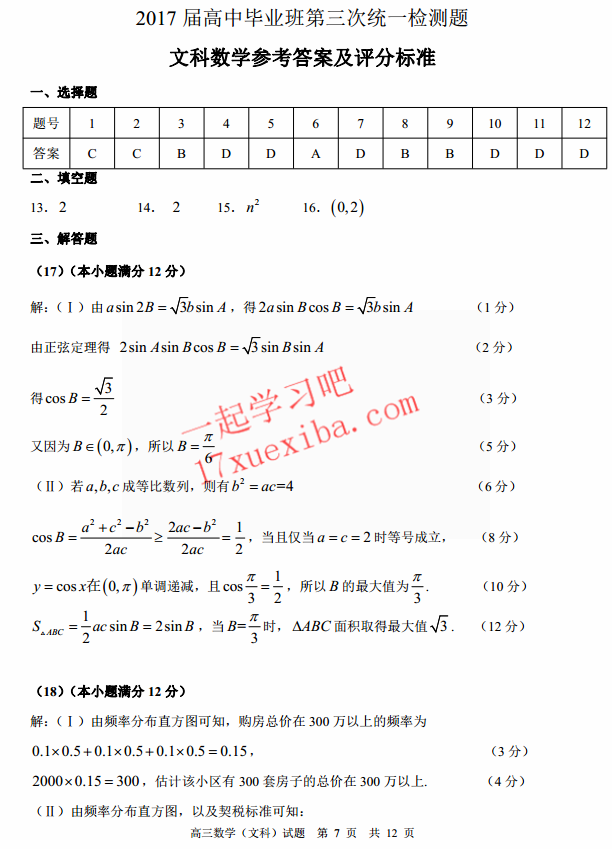 肇庆2017届毕业班第三次教学质量检测数学文科试题及答案(7)
