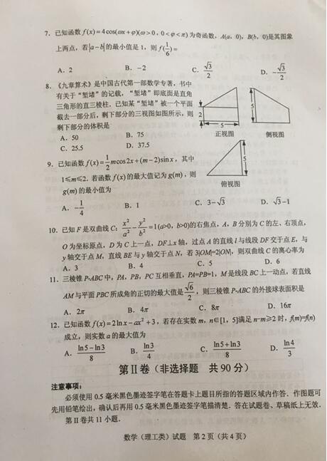 绵阳市高中2014级第三次诊断性考试数学理科试题及答案(2)