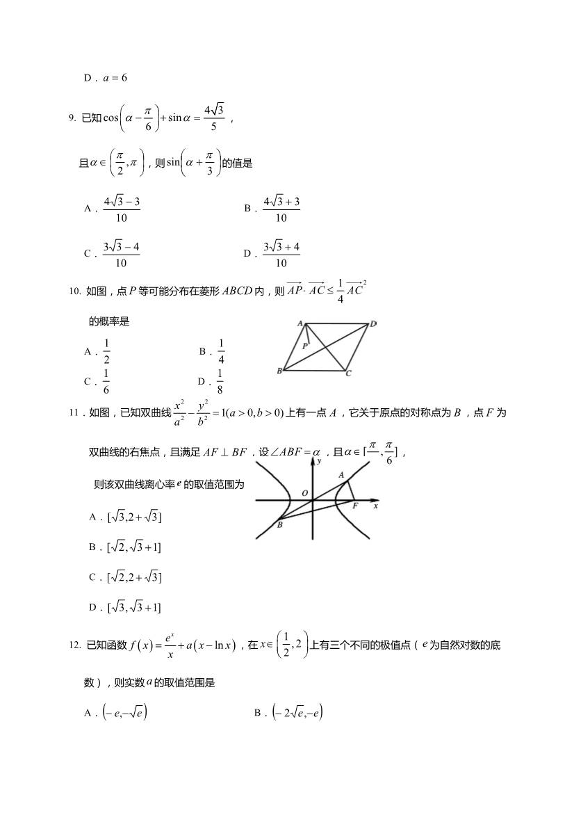 2017遂宁三诊数学理科试题及答案(3)