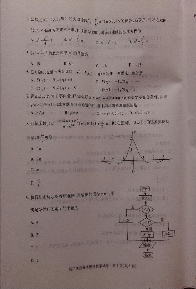 2017湖北高三四月调考数学理科试题及答案(2)
