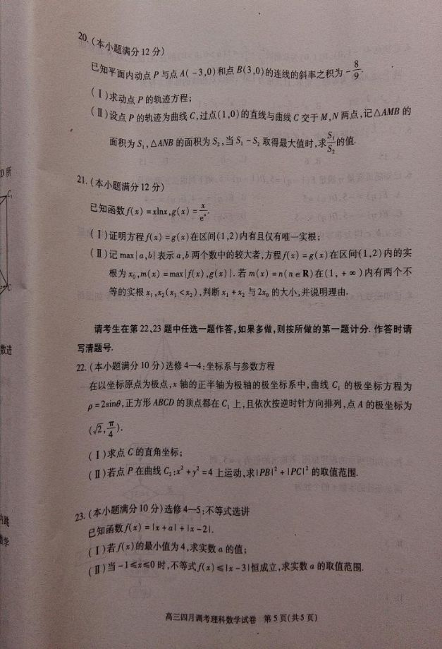 2017湖北高三四月调考数学理科试题及答案(5)