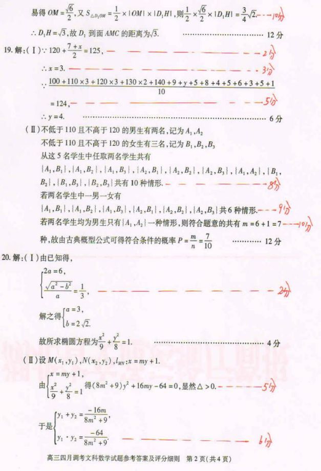 2017湖北高三四月调考数学文科试题及答案(7)