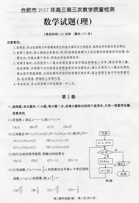 2017年合肥三模数学理科试题及答案