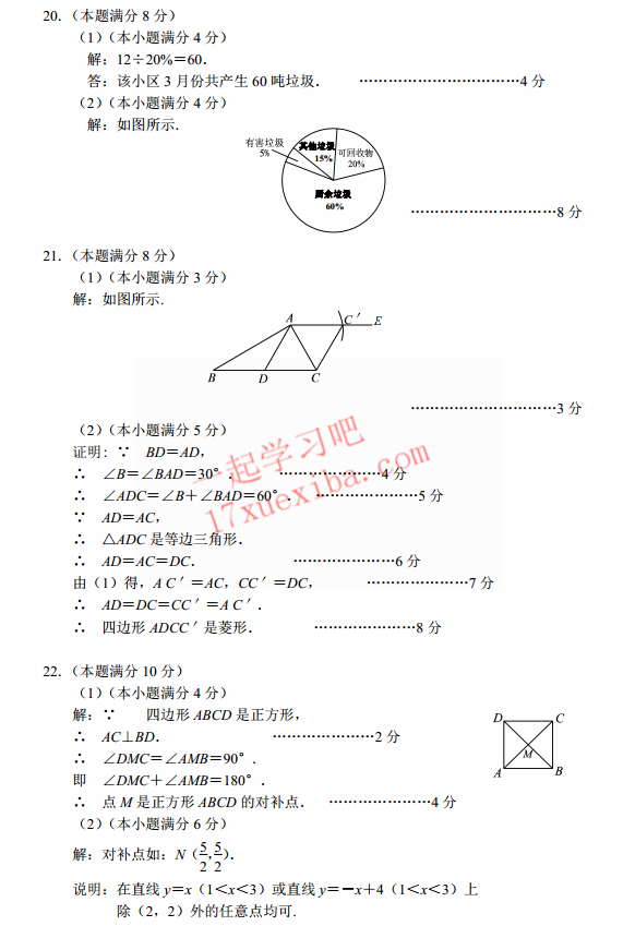 厦门市2017年中考教学质量检查数学试题及答案(2)