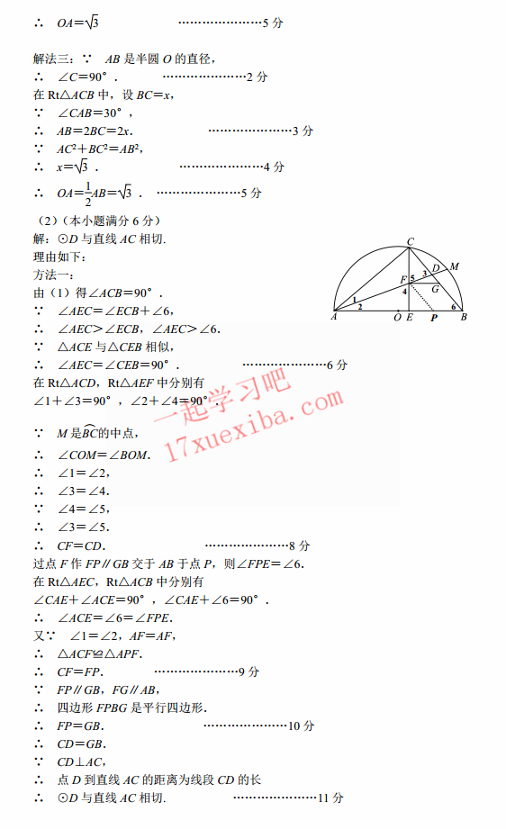 厦门市2017年中考教学质量检查数学试题及答案(5)