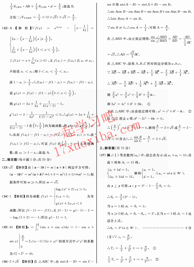 2017江南十校高三二模数学理科试题及答案(2)