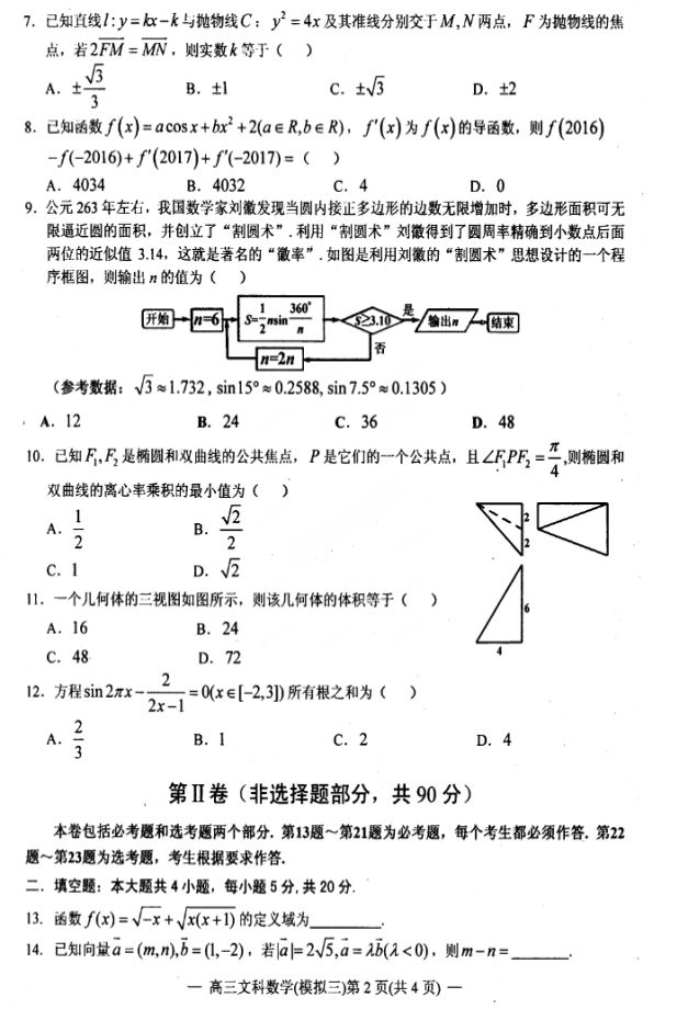 2017南昌高三三模数学文科试题及答案(2)