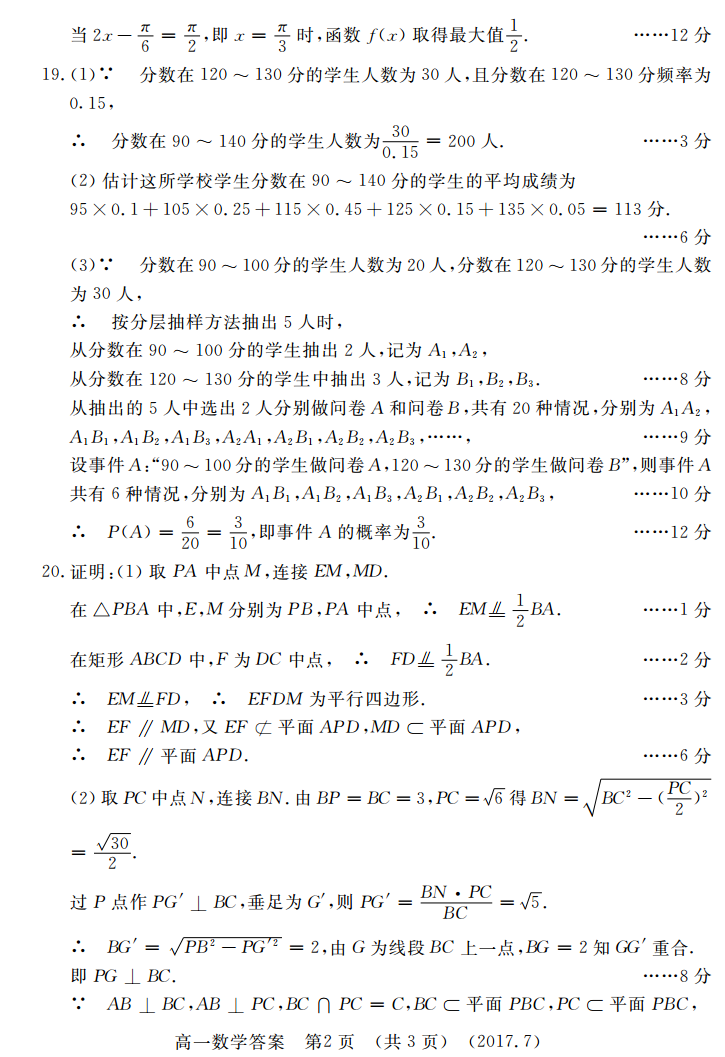 洛阳市2016-2017学年高一年级质量检测数学试题答案(2)