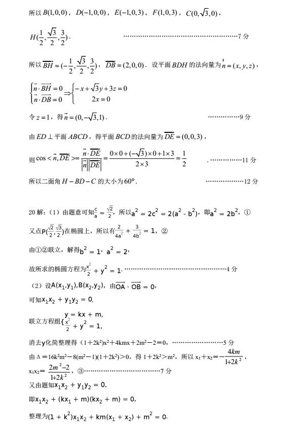 彭州市2017-2018学年上期高三期中教学质量调研理科数学试题答案(3)