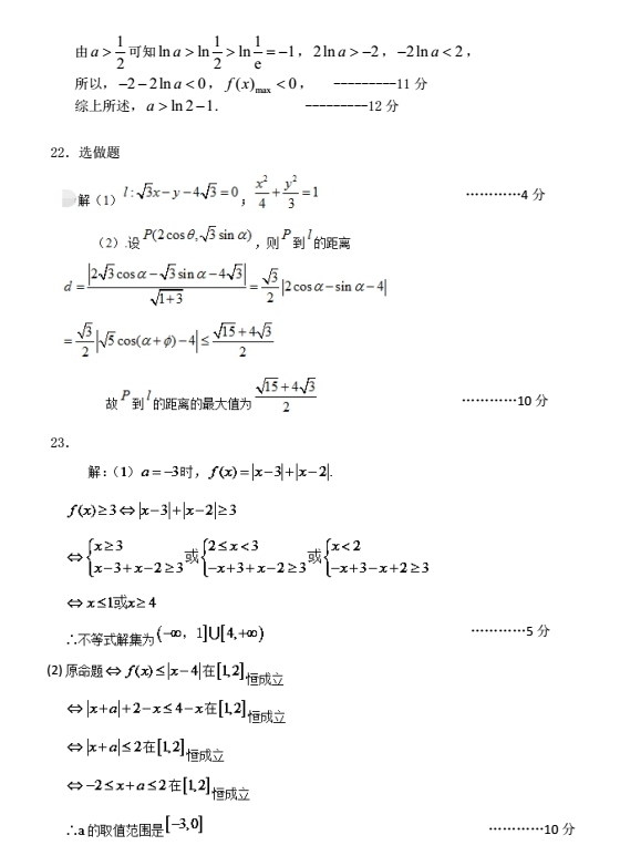 彭州市2017-2018学年上期高三期中教学质量调研理科数学试题答案(5)