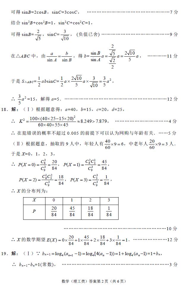 2018年绵阳二诊数学理科试题及答案(2)