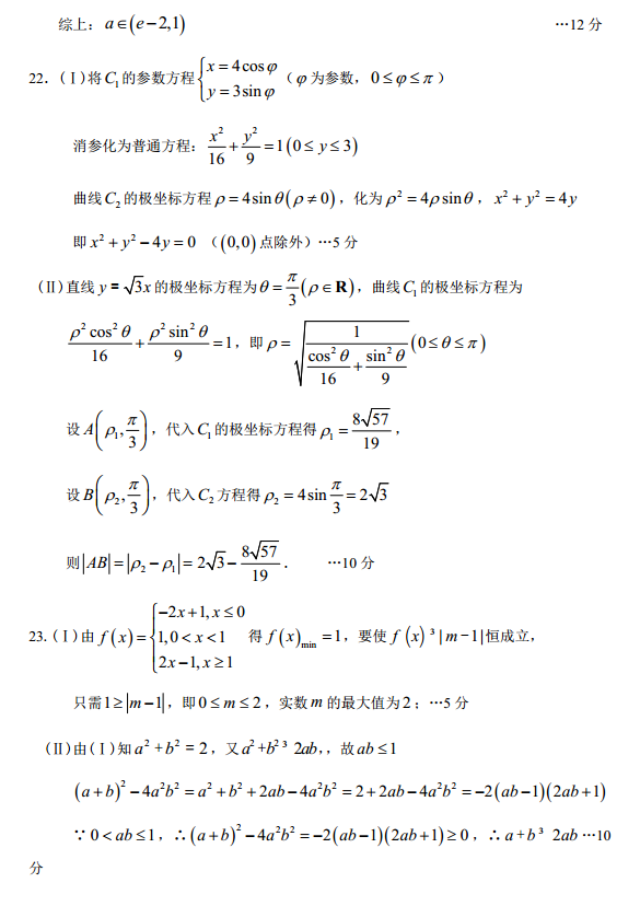 2018年乌鲁木齐一模数学理科试题及答案(4)