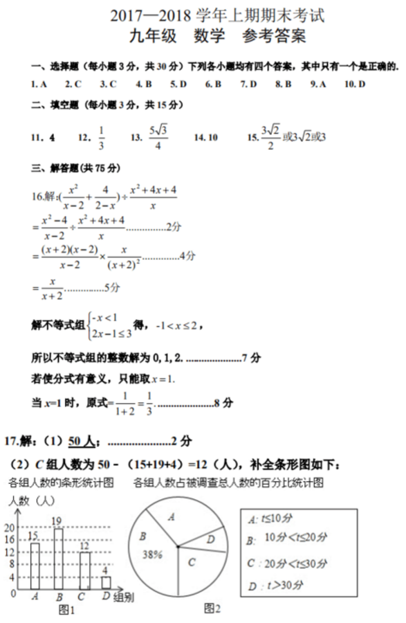 郑州市2017-2018学年上期期末考试九年级数学试题答案