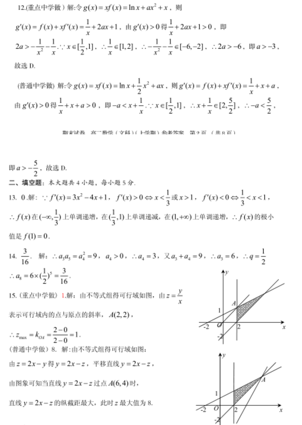 九江市2017-2018学年上期期末考试高二数学文科试题答案(3)