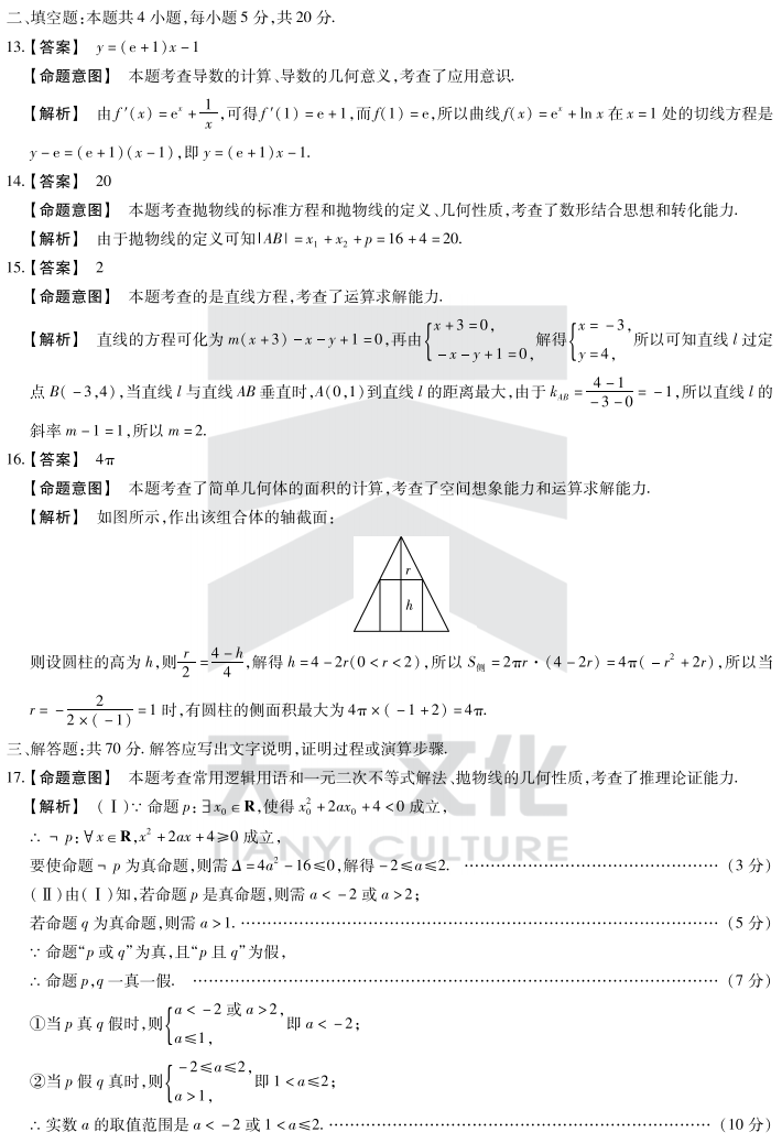 巢湖2017-2018学年度第一学期高二期末考试数学文科试题答案(3)