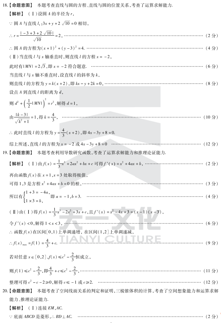 巢湖2017-2018学年度第一学期高二期末考试数学文科试题答案(4)