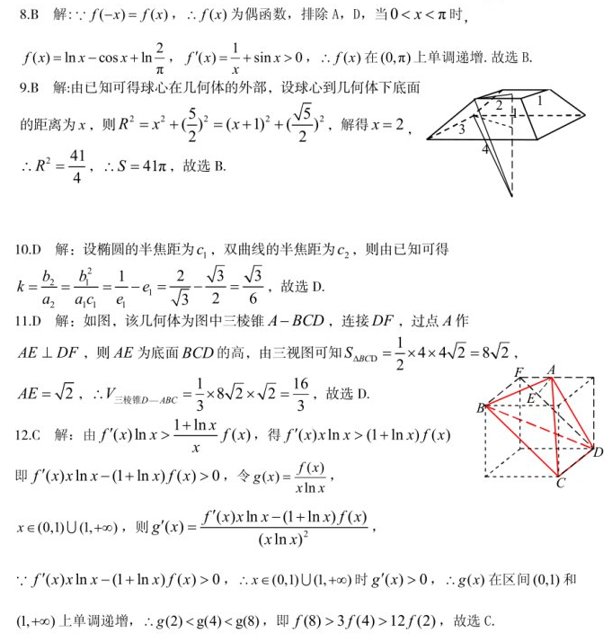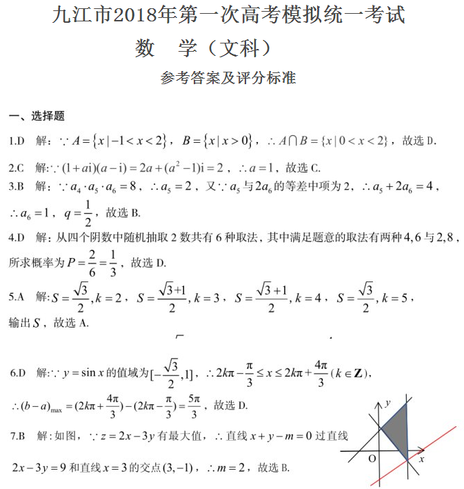 2018年九江高三一模数学文科试题答案