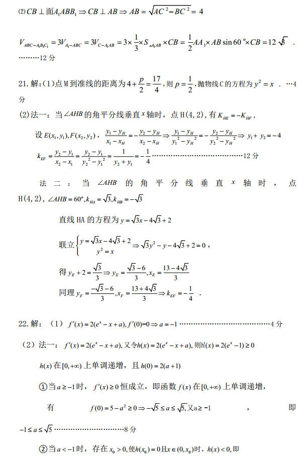 宜春2017-2018学年第一学期期末统考高三数学文科试题答案(3)