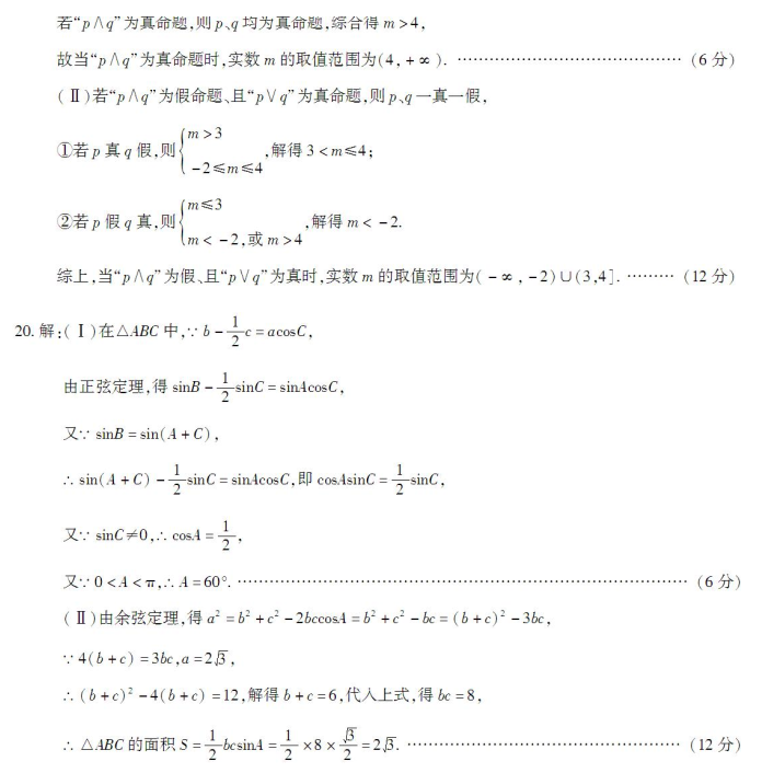 咸阳2017-2018学年度第一学期期末质检高二数学理科试题答案(2)