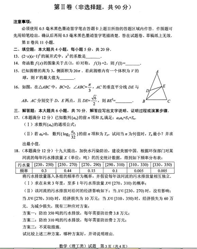 2018年绵阳三诊数学理科试题及答案(3)