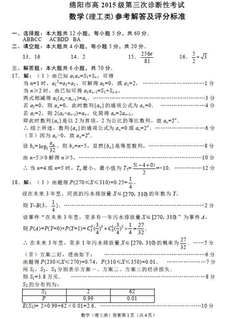 2018年绵阳三诊数学理科试题及答案(5)