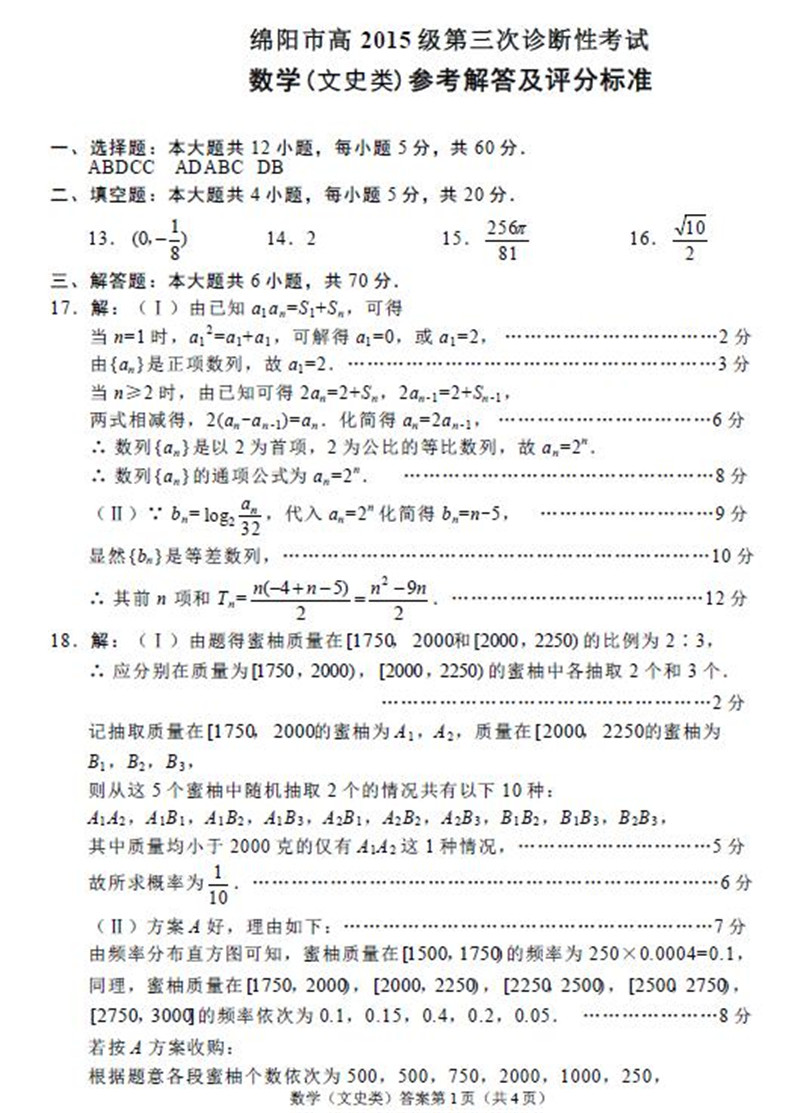 2018年绵阳三诊数学文科试题及答案(5)