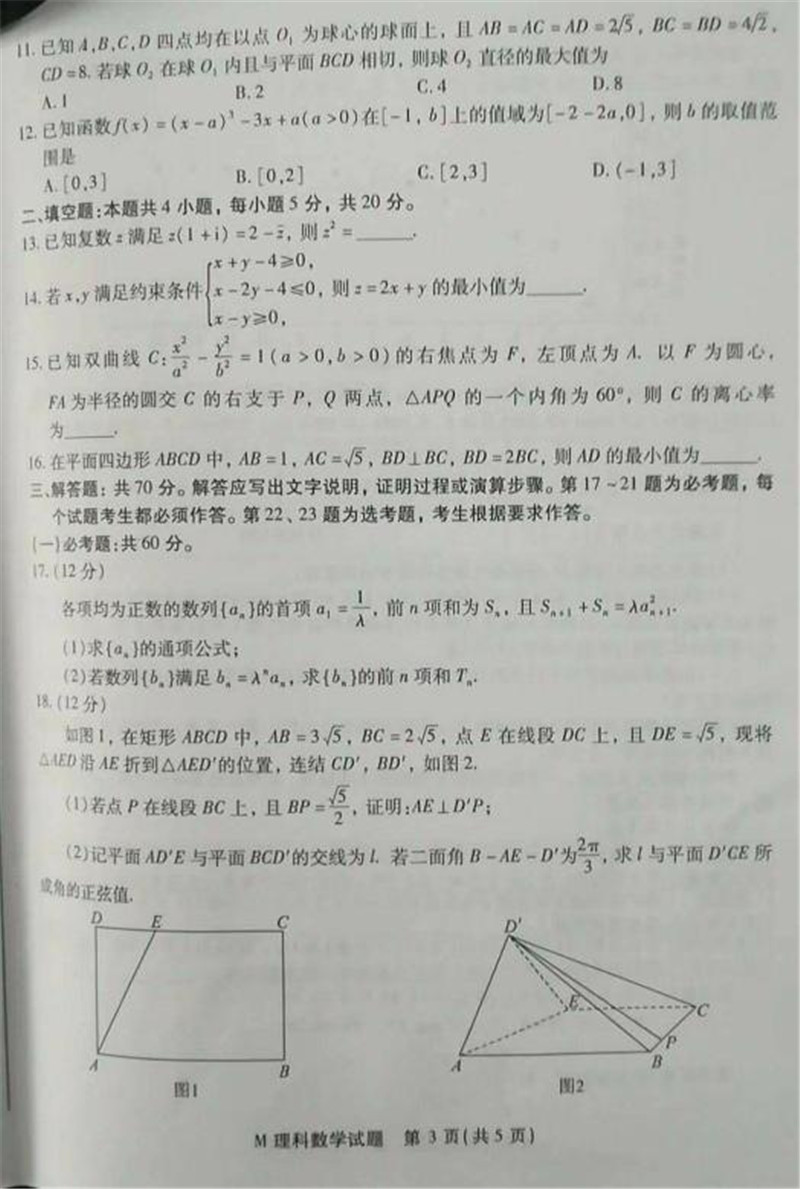 2018年福建省高三质量检查数学理科试题答案(3)