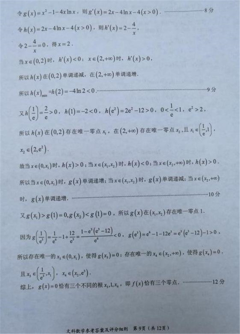 2018年福建省高三质量检查数学文科试题答案(14)