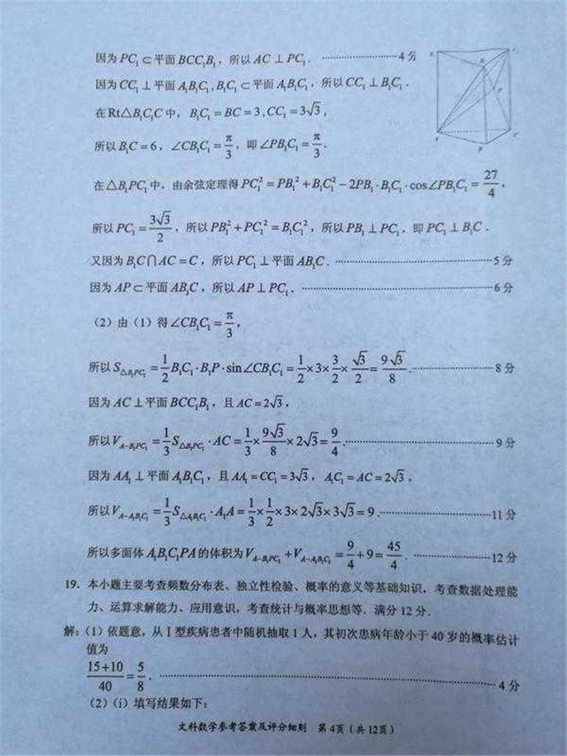 2018年福建省高三质量检查数学文科试题答案(9)