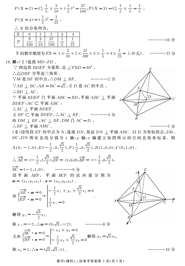 2018成都二诊数学理科试题答案 成都2015级高三二诊数学(2)