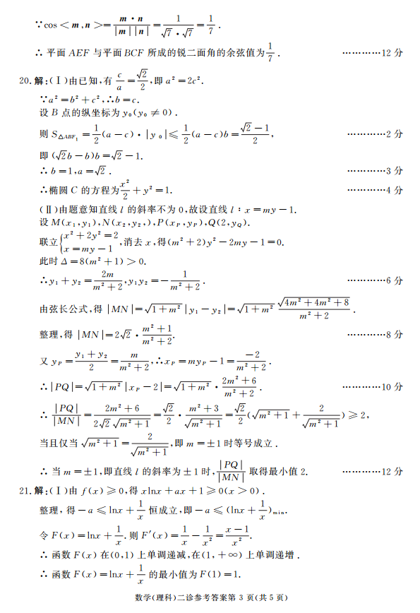 2018成都二诊数学理科试题答案 成都2015级高三二诊数学(3)