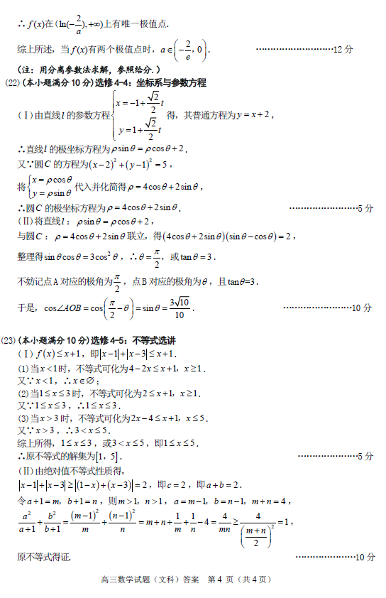 2018年合肥三模数学文科试题及答案(4)