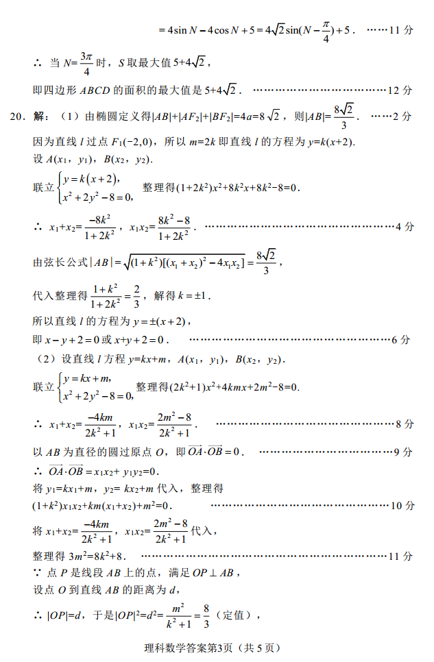 2019绵阳二诊数学理科试题及答案(3)
