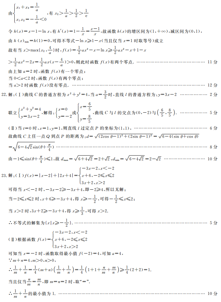 阳光学习网 来源: 理科数学试题答案 2018-12-25 本文受益:人 大 中 小