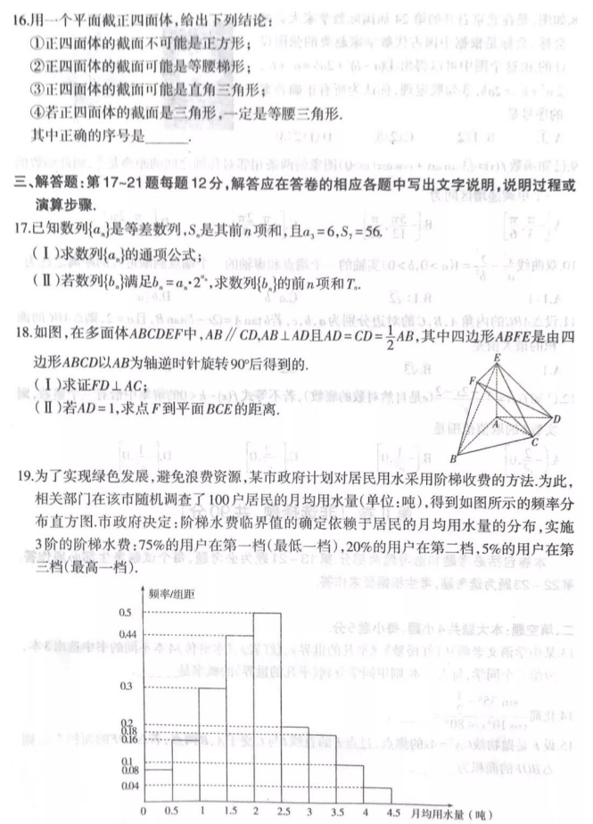 2019年乌鲁木齐一模数学文科试题答案(3)