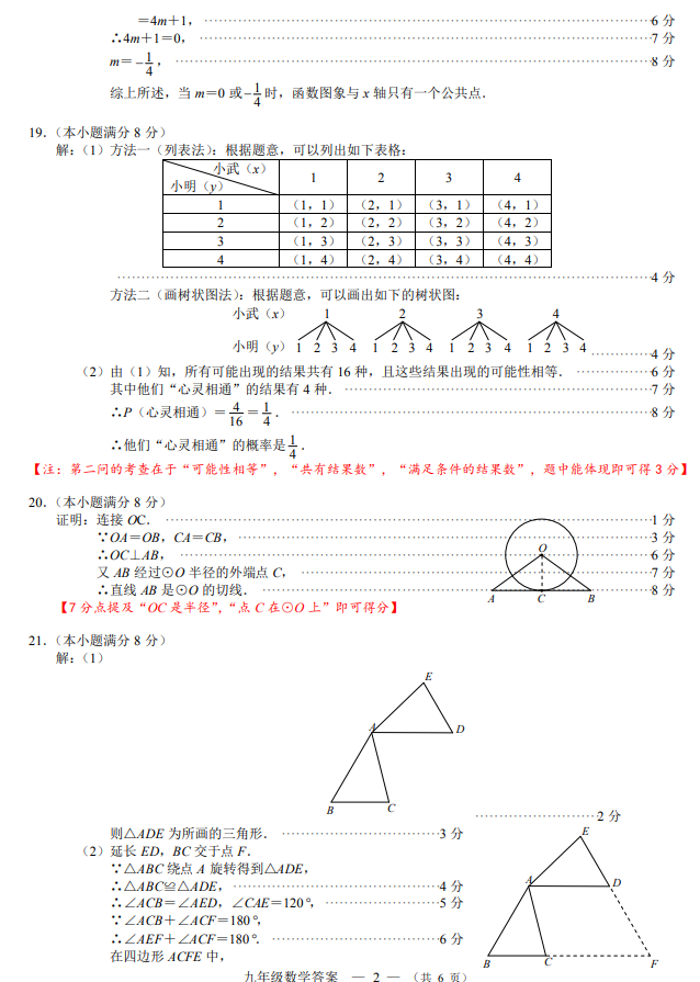 福州市2018-2019学年第一学期九年级期末质量检测数学试题答案(6)