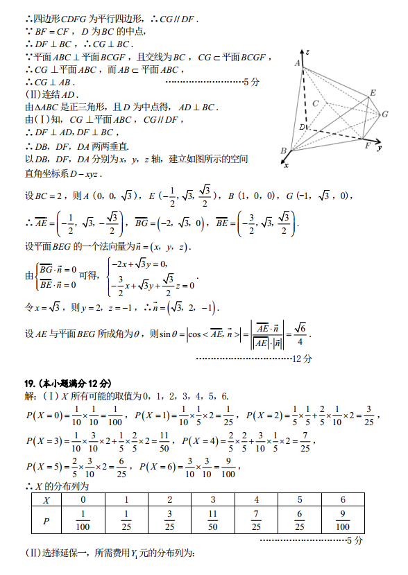 合肥市2019年高三第二次教学质量检测数学理科试题答案(2)