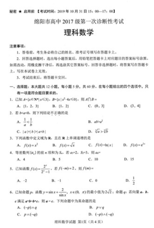 阳光学习网 来源: 绵阳一诊数学 2019-11-17 本文受益:人 大 中 小