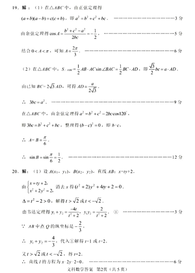 2020年绵阳二诊数学文科试题及答案(6)