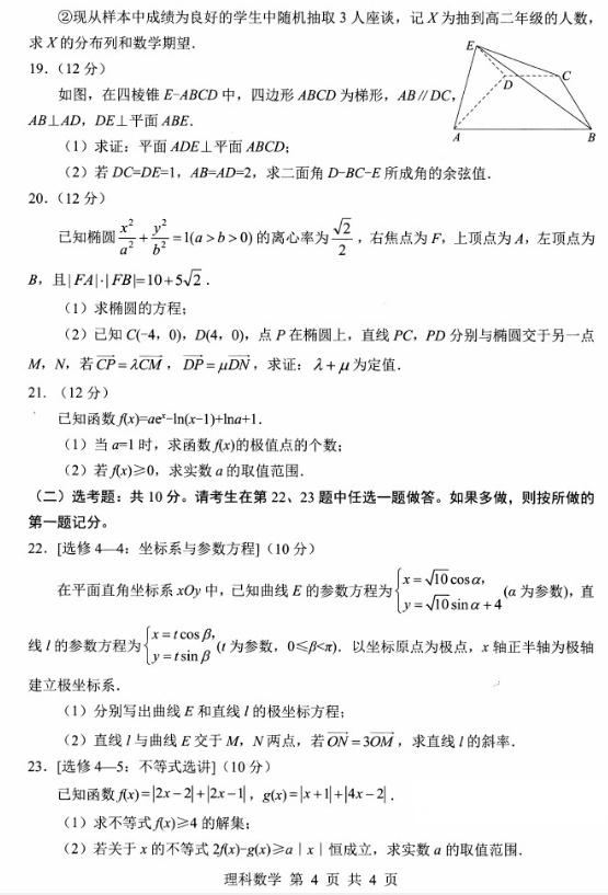 2021年绵阳三诊数学理科试题及答案(4)