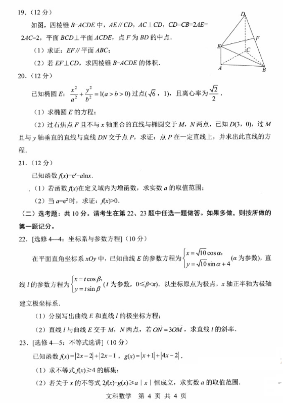 2021年绵阳三诊数学文科试题及答案(4)
