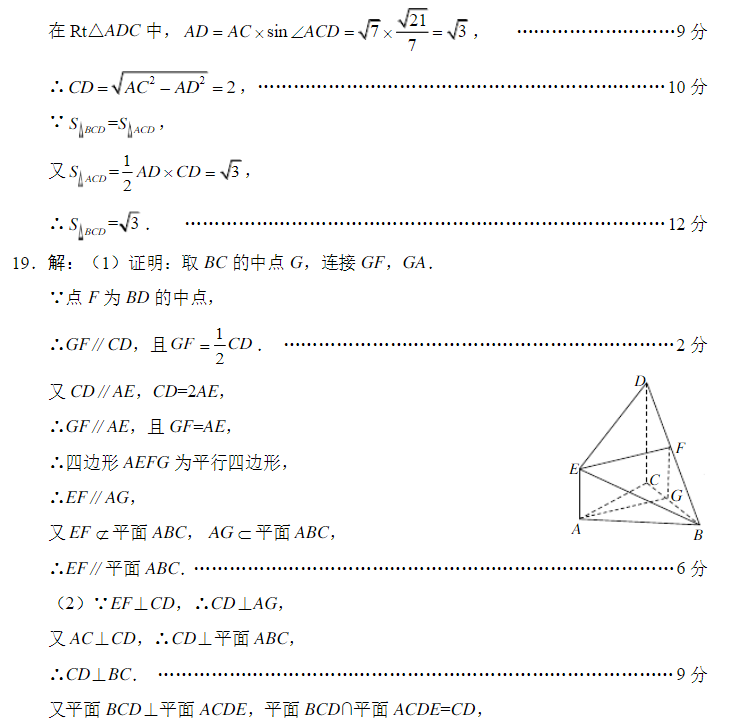 2021年绵阳三诊数学文科试题及答案(6)